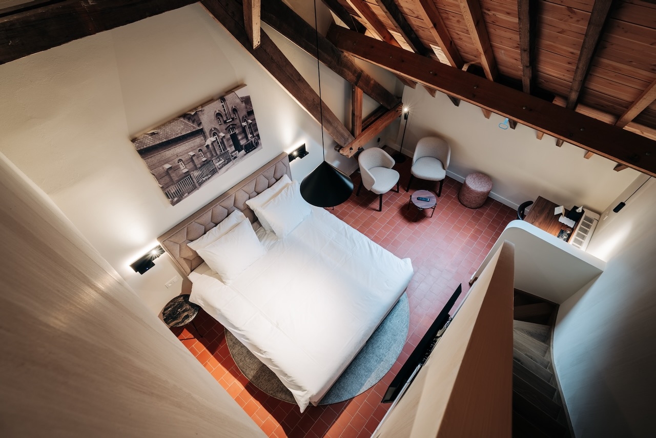 De Mezzanine kamers (25 m²) zijn verdeeld over twee niveaus, hebben uitzicht op de tuin en zijn voorzien van 1 tweepersoonsbed (op de begane grond), televisie, wifi, bureau, kluisje, koffie- en theefaciliteiten, koelkast, airconditioning, verwarming, kast en badkamer (via de trap) met inloopdouche, toilet, wastafel, haardroger en gratis toiletartikelen.