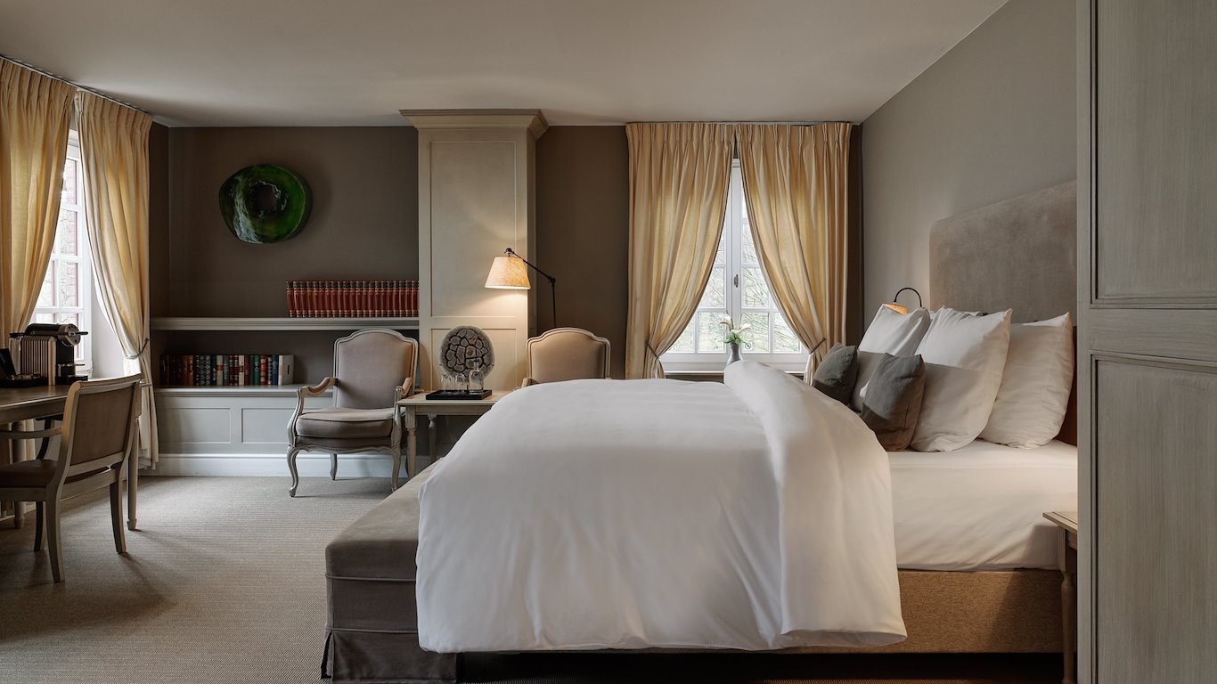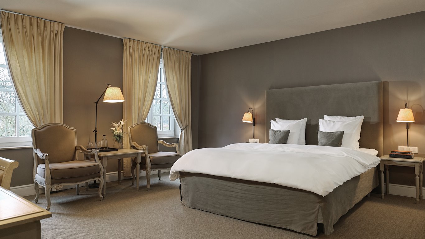 Ruime, luxe kamers (30 - 44 m2, deels met Hästens bedden) ingericht in hedendaagse Franse Campagne–stijl. De kamers zijn voorzien van elegante badkamers met bad met TV en douche, airconditioning, flatscreen en DVD, Nespresso koffie, badjas en badslippers en gratis WiFi (bronwater en vers fruit aanwezig).