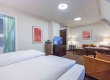 De ruime Luxe kamers (34 m2) zijn voorzien van 1 tweepersoonsbed, bureau, kluis, televisie, wifi, make-up spiegel, slaapbank en badkamer met douche, toilet, wastafel en haardroger.