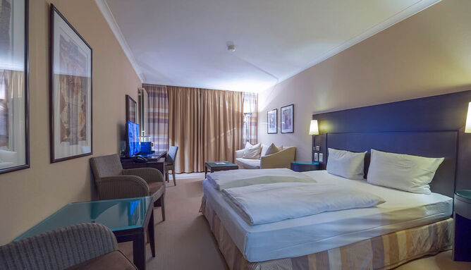 De Comfort kamers (24 m2) zijn voorzien van 1 tweepersoonsbed, bureau, kluis, televisie, wifi, make-up spiegel, minibar en badkamer met douche en/of bad, toilet, wastafel en haardroger.
