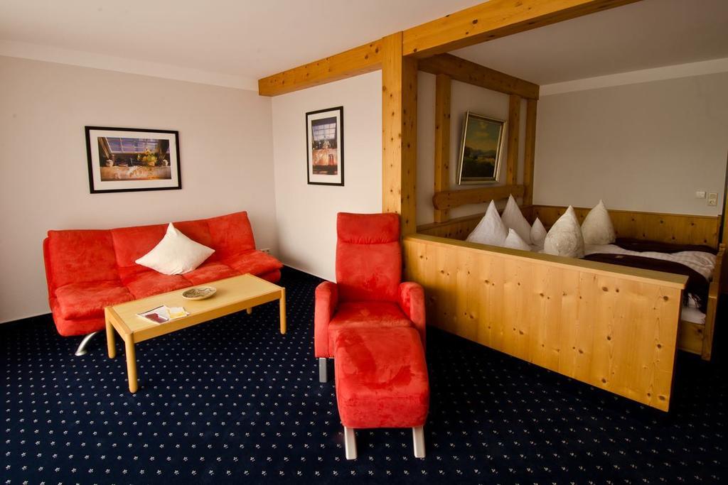 De zeer ruime wellness Suite (84m²) heeft een apart woon- en slaapgedeelte, tweepersoonsbed, bank, balkon, terras, uitzicht op de tuin, gratis WiFi, flatscreen tv, telefoon, kluisje, waterkoker, minibar, haardroger, badjas, massagebed, vrijstaand bad met uitzicht, douche en wc.
