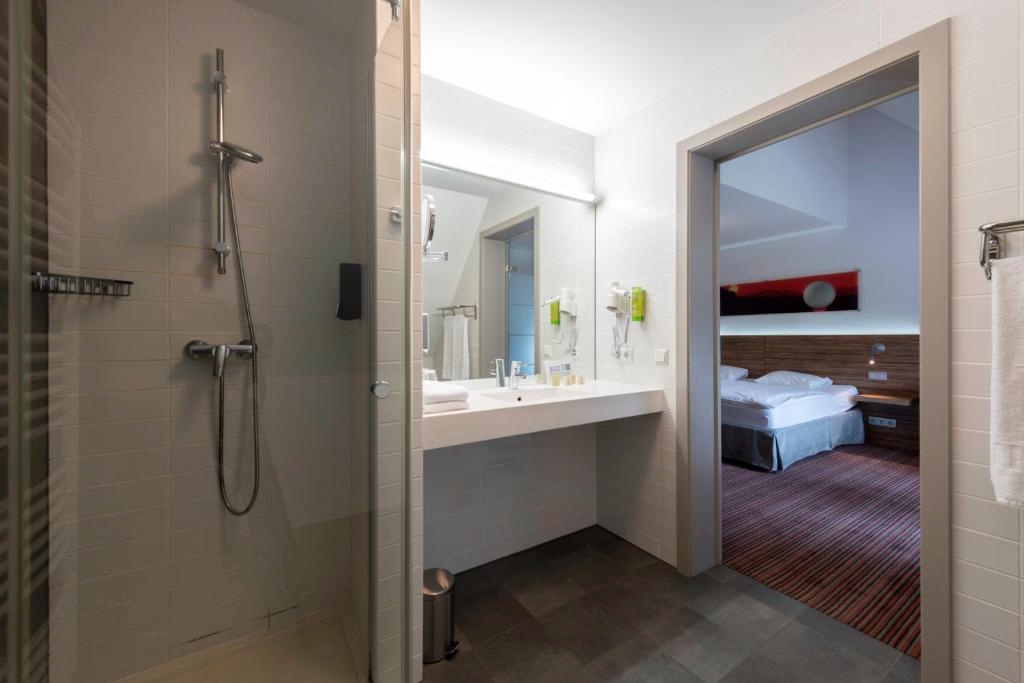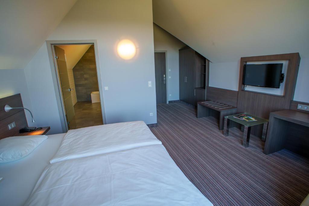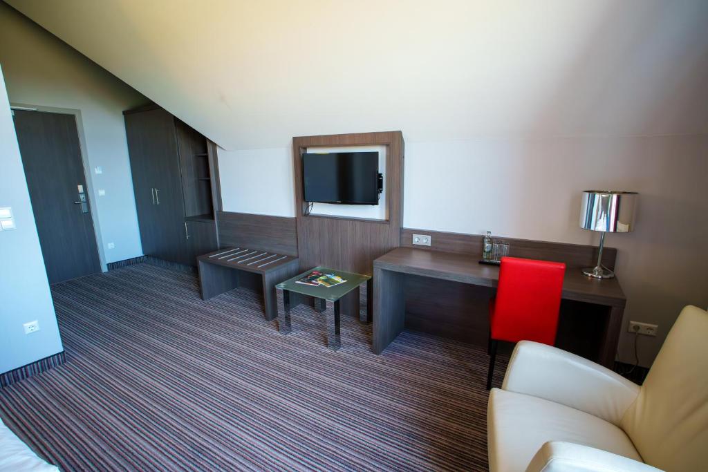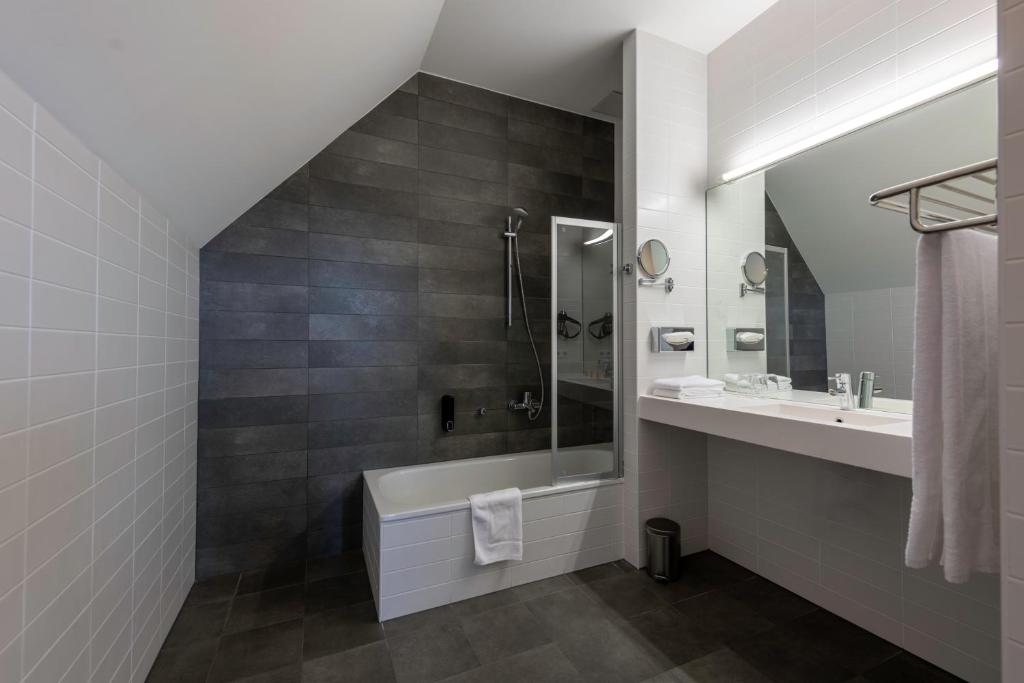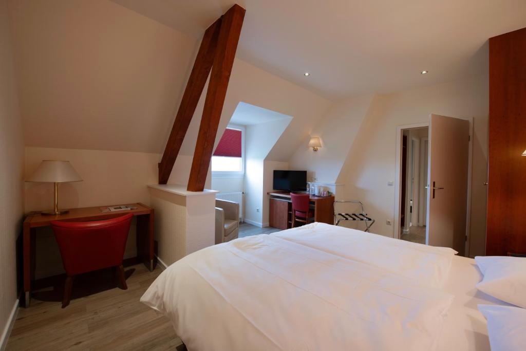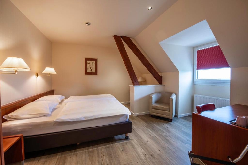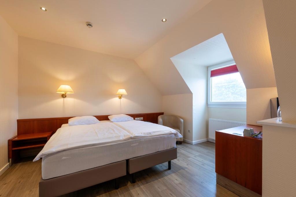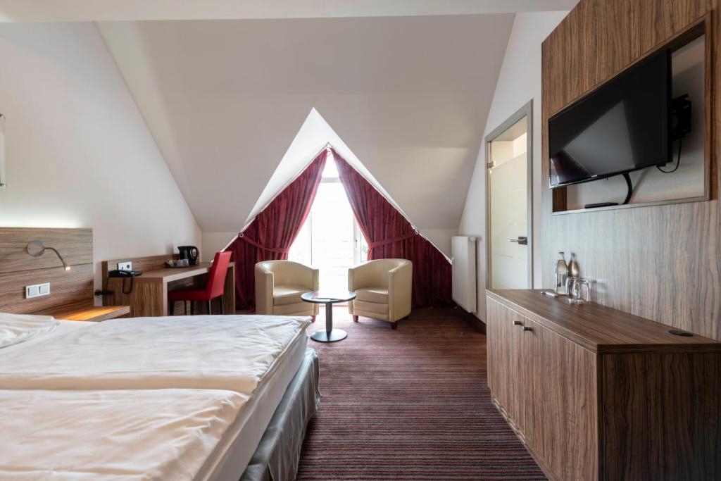 De ruime Comfort kamers (29 m²) bieden uitzicht op de omgeving en zijn voorzien van 1 tweepersoonsbed, flatscreen televisie, wifi, zithoek, bureau, koffie- en theefaciliteiten, kluisje, koelkast, verwarming, ventilator en badkamer met bad/douche combinatie, toilet, wastafel, haardroger en gratis toiletartikelen.