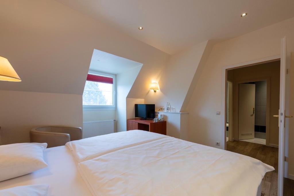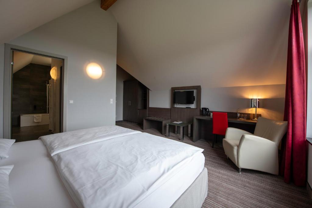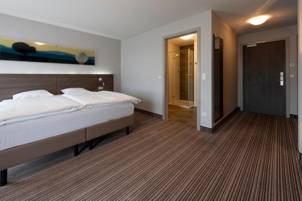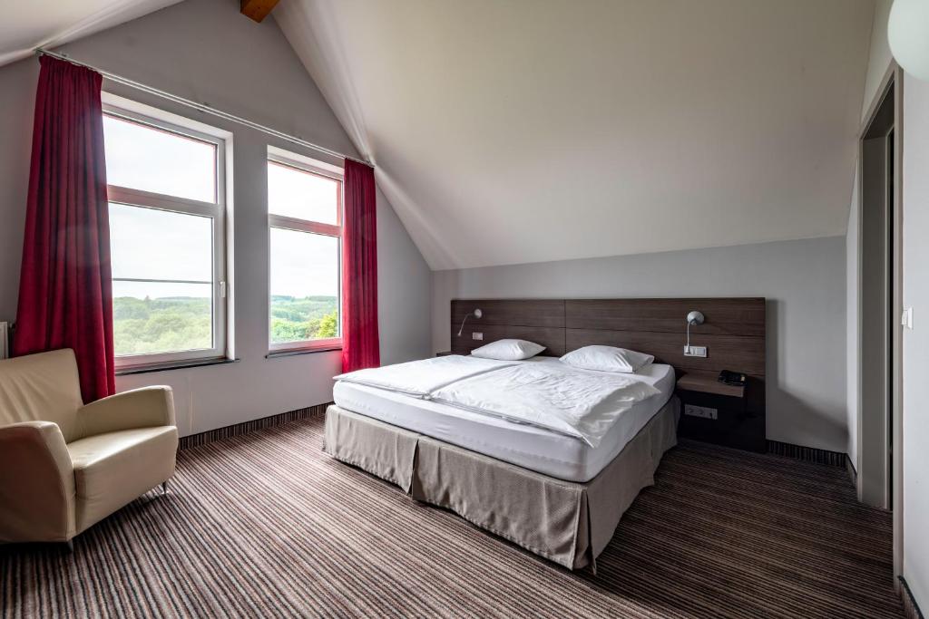 De 23 comfortabele hotelkamers van Hotel & Restaurant Golf de Clervaux hebben uitzicht op de tuin of de omgeving.