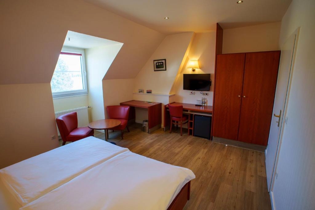 De ruime Standaard kamers (31 m²) bieden uitzicht op de omgeving en zijn voorzien van 1 tweepersoonsbed, flatscreen televisie, wifi, zithoek, bureau, koffie- en theefaciliteiten, kluisje, koelkast, verwarming, ventilator en badkamer met bad/douche combinatie, toilet, wastafel, haardroger en gratis toiletartikelen.