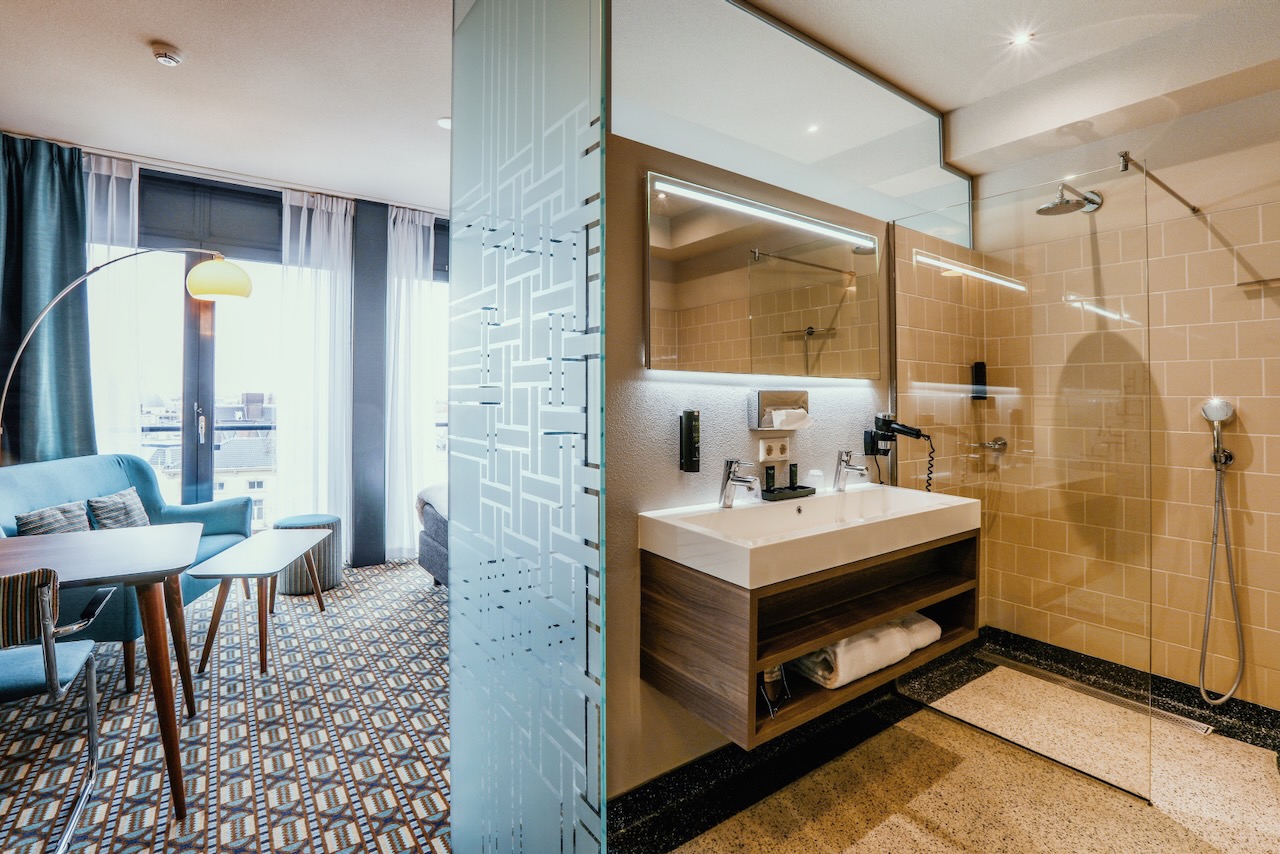 De zeer ruime Design suites (30m²) bevinden zich aan de achterzijde van het hotel en zijn voorzien van groot tweepersoonsbed, 49-inch flatscreen televisie met streamingdienst, radio, gratis WiFi, werkplek, bank met tafeltje, minibar, koffie- en theefaciliteiten, kluisje, airconditioning, verwarming, kitchenette en badkamer met luxe inloopdouche, vrijstaand ligbad, apart toilet, wastafel, haardroger en gratis toiletartikelen.