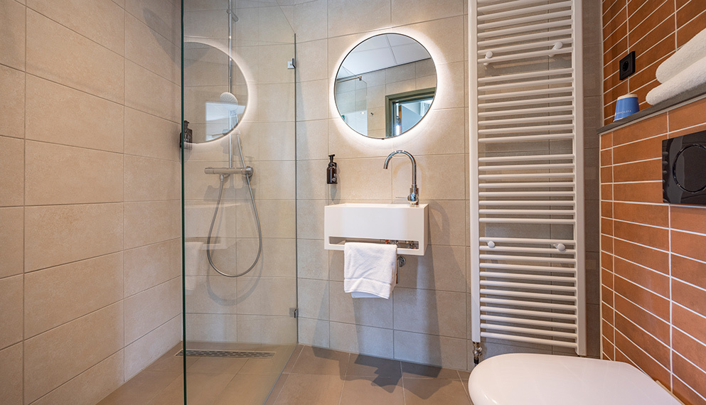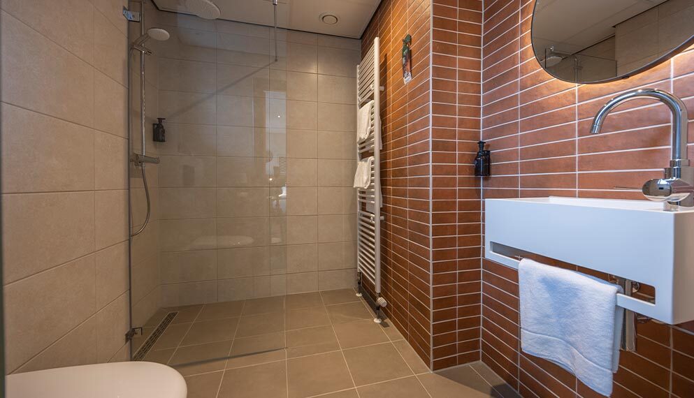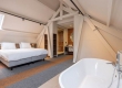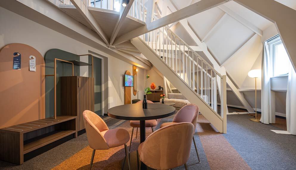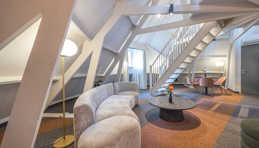 De Suite (ca 60 m2) is voorzien van 1 tweepersoonsbed, telefoon, televisie, zithoek, wifi, koffie- en theefaciliteiten en badkamer met bad, douche, toilet, wastafel, haardroger en toiletartikelen.