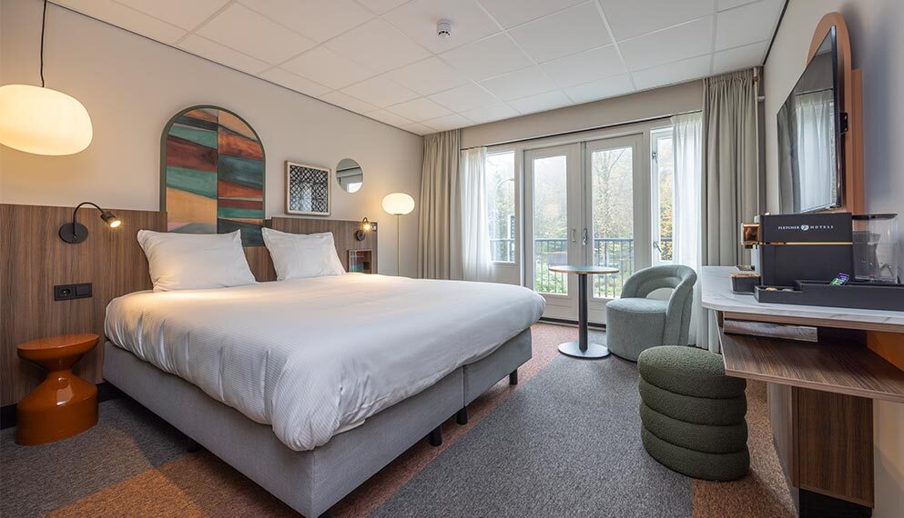 Deze Comfort kamers (ca 20 m2) zijn voorzien van balkon, 2 eenpersoonsbedden, telefoon, televisie, wifi, koffie- en theefaciliteiten en badkamer met douche, toilet, wastafel, haardroger en toiletartikelen.