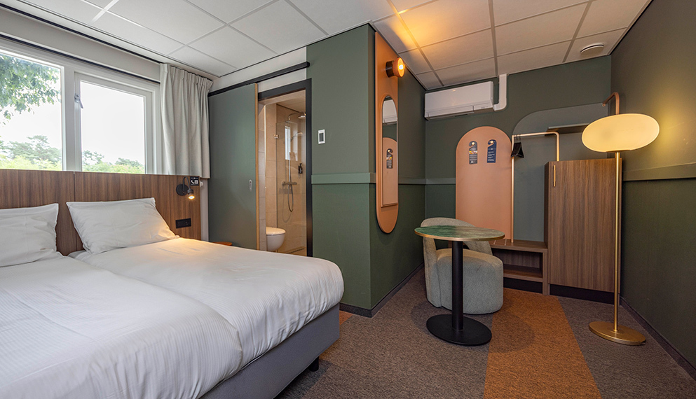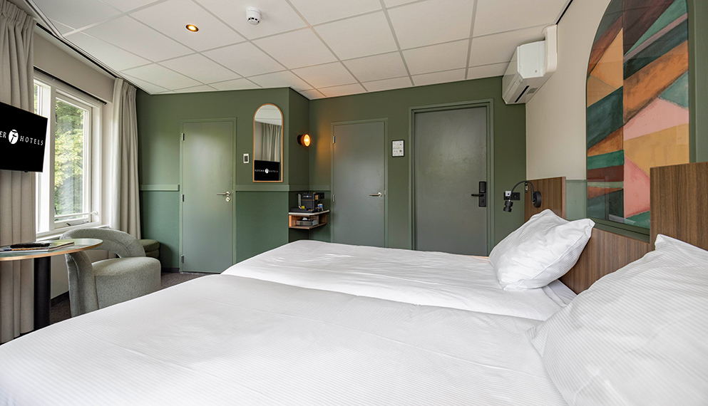 De Comfort kamers (ca 17 m2) zijn voorzien van 2 eenpersoonsbedden, zithoek, televisie, wifi, koffie- en theefaciliteiten, airconditioning en badkamer met douche, toilet, wastafel, haardroger en toiletartikelen.