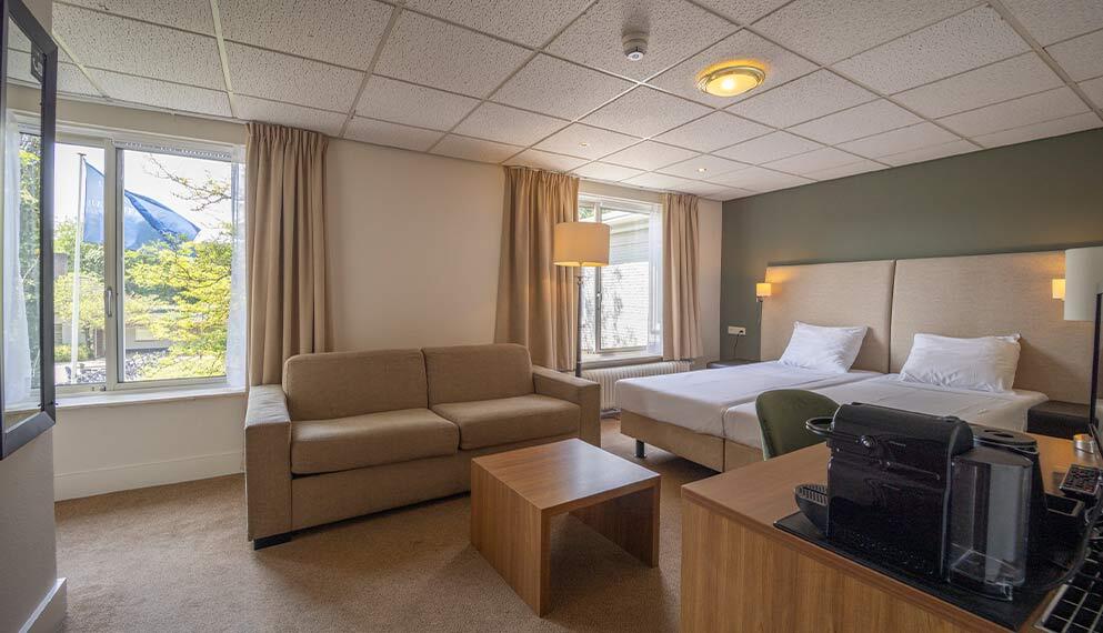 De Junior suites zijn voorzien van 2 eenpersoonsbedden, slaapbank, televisie, telefoon, zithoek, badjassen en slippers, koffie- en theefaciliteiten, ventilator en badkamer met douche, toilet, wastafel, haardroger en toiletartikelen. Enkele suites beschikken over een balkon en apart slaapgedeelte.