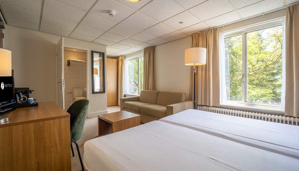 De Familiekamers zijn voorzien van 2 eenpersoonsbedden, slaapbank, televisie, telefoon, zithoek, koffie- en theefaciliteiten, ventilator en badkamer met douche, toilet, wastafel, haardroger en toiletartikelen.