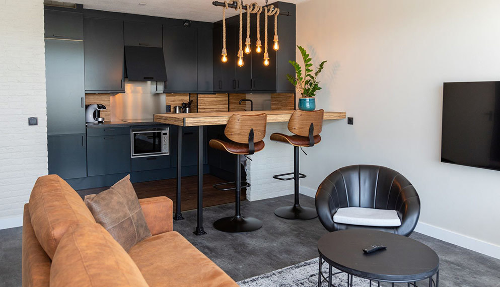 De ruime, sfeervol ingerichte appartementen bevinden zich in het rustige apart gelegen hotelgebouw en zijn voorzien van balkon over de gehele breedte met wijds uitzicht, woonkamer met open keuken, slaapkamer, zitje, flatscreen televisie, bureau, kast, minibar, koffie- en theefaciliteiten, gratis WiFi, apart toilet, wasruimte en badkamer met bubbelbad, douche, toilet, dubbele wastafel, haardroger en toiletartikelen.