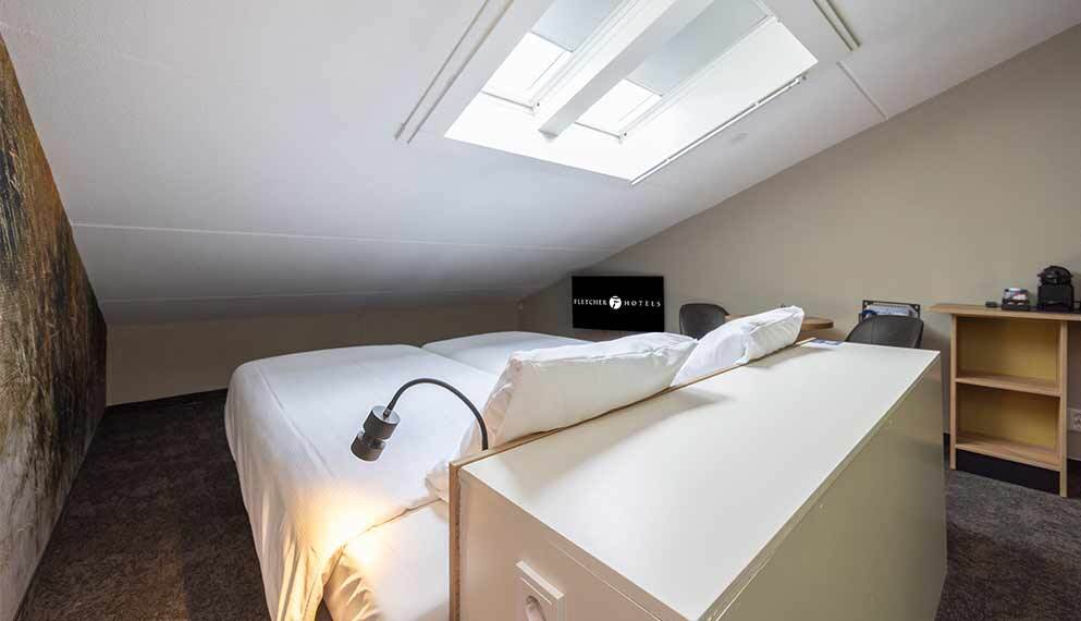 De kleine tweepersoonskamers (20 m2) hebben door het schuine dak een intieme indeling en zijn voorzien van 2 eenpersoonsbedden, televisie, wifi, zitje, koffie- en theezetfaciliteiten en badkamer met inloopdouche, toilet, wastafel, haardroger en toiletartikelen.
