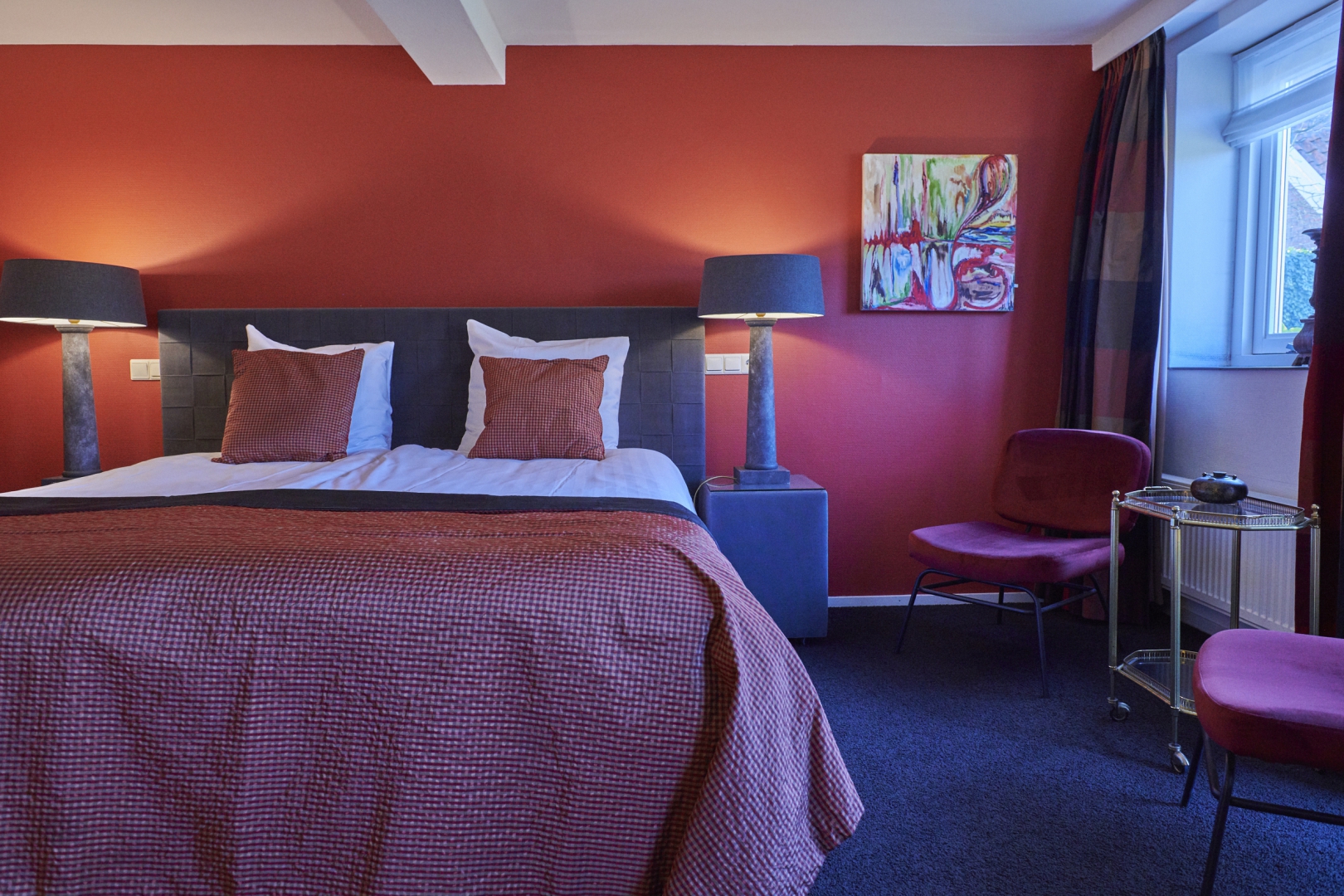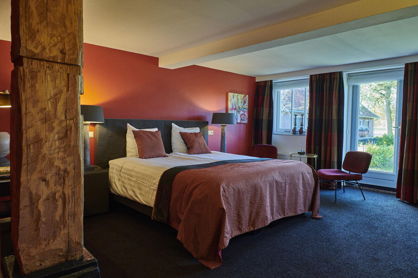 De Deluxe kamers (38 m² - nr. 2 en 3) bevinden zich op de begane grond, hebben een eigen ingang en uitzicht op de tuin en zijn voorzien van zeer comfortabel boxspringbed (king size of twin), gratis draadloos internet, flatscreen-tv, zithoek, slaapbank, verwarming, kast, koffie- en theefaciliteiten, terras, terrasmeubels en badkamer met bad, douche, toilet, wastafel, haardroger en toiletartikelen.