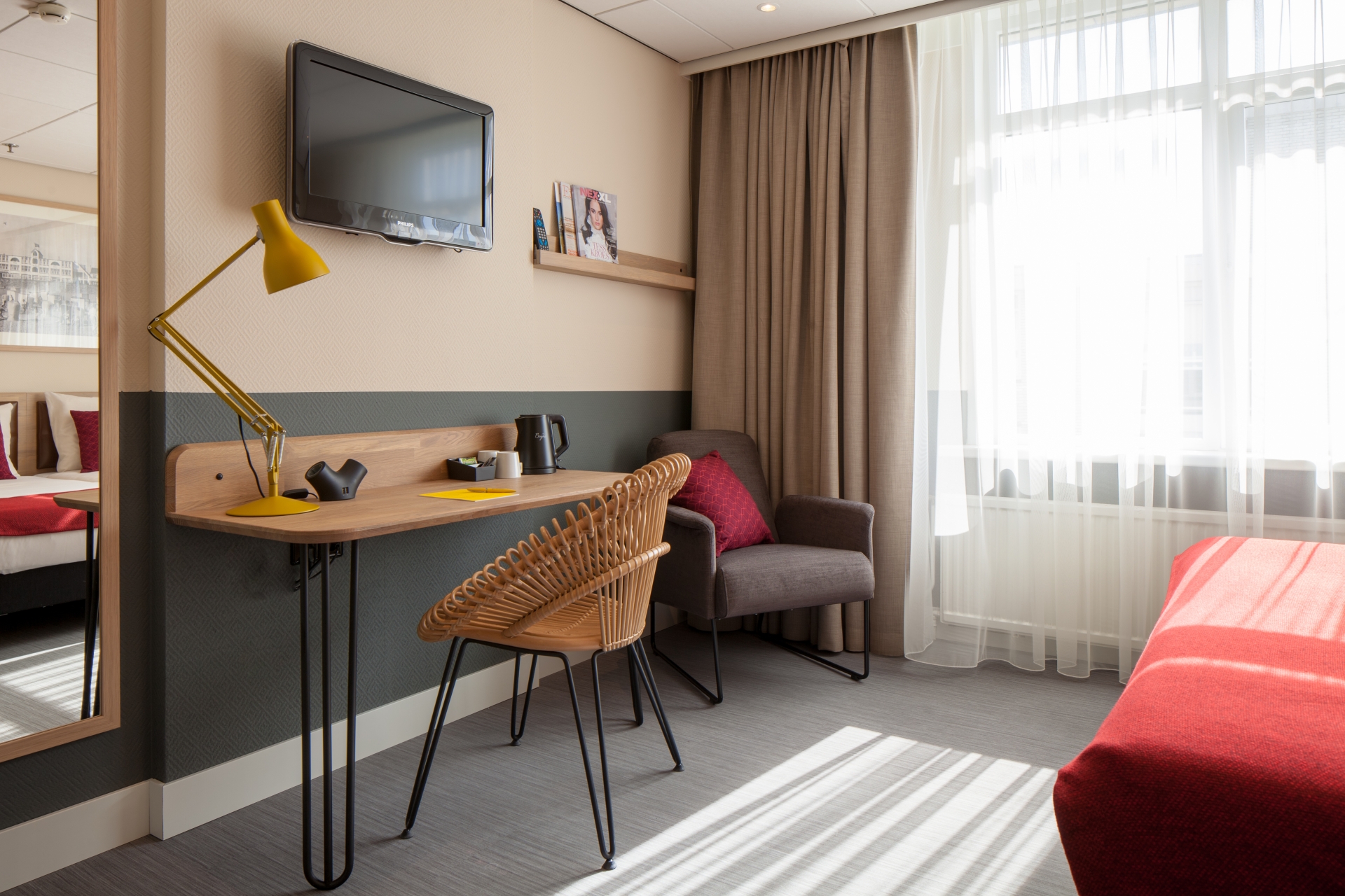 De éénpersoonskamers zijn voorzien van een eenpersoonsbed, flatscreen tv, bureau, kluisje, koffie- en theefaciliteiten en badkamer met douche, toilet en haardroger,